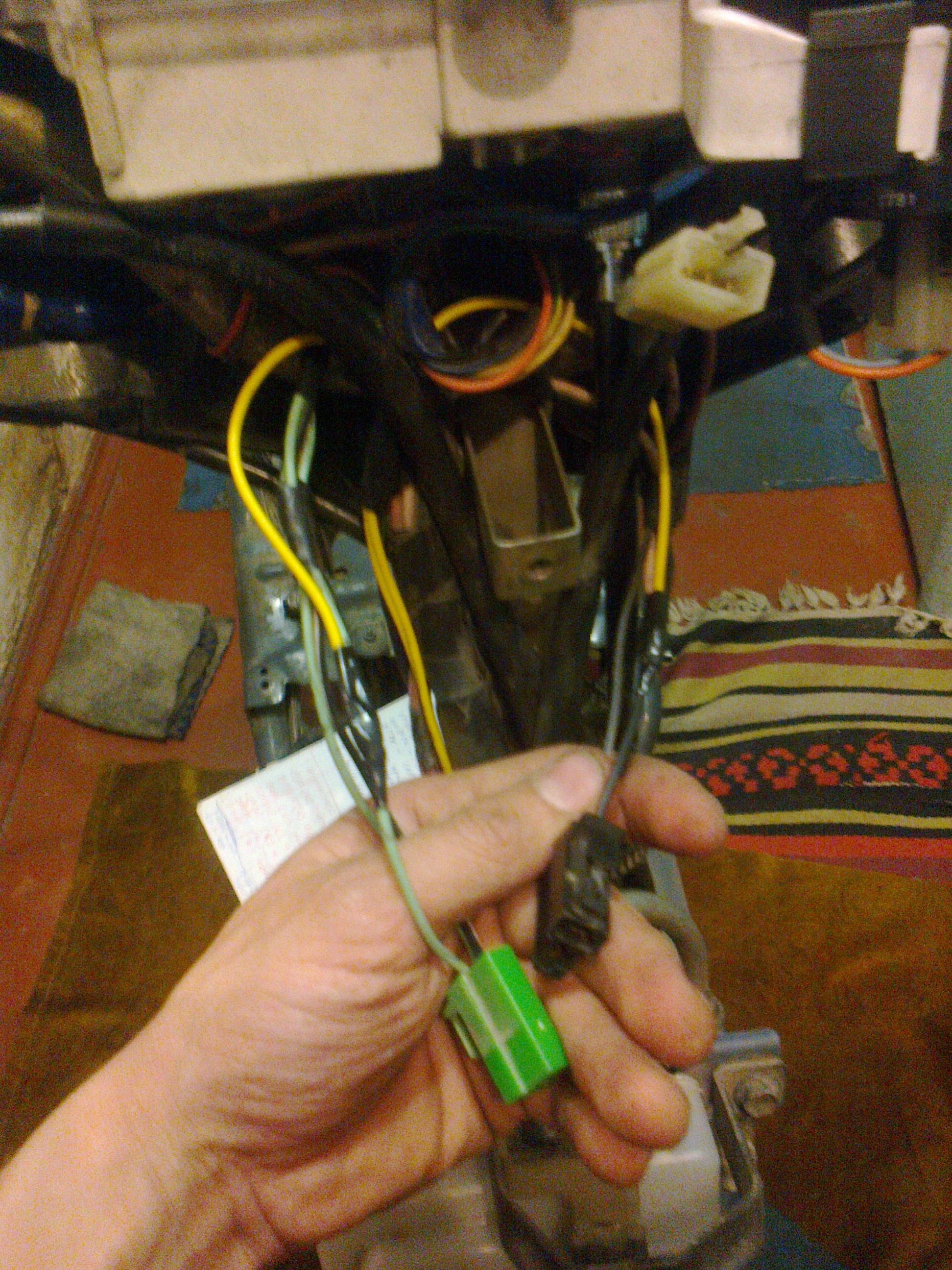 1) жёлтый провод -к плюсовому проводу на правый поворотник,это- салатовый.