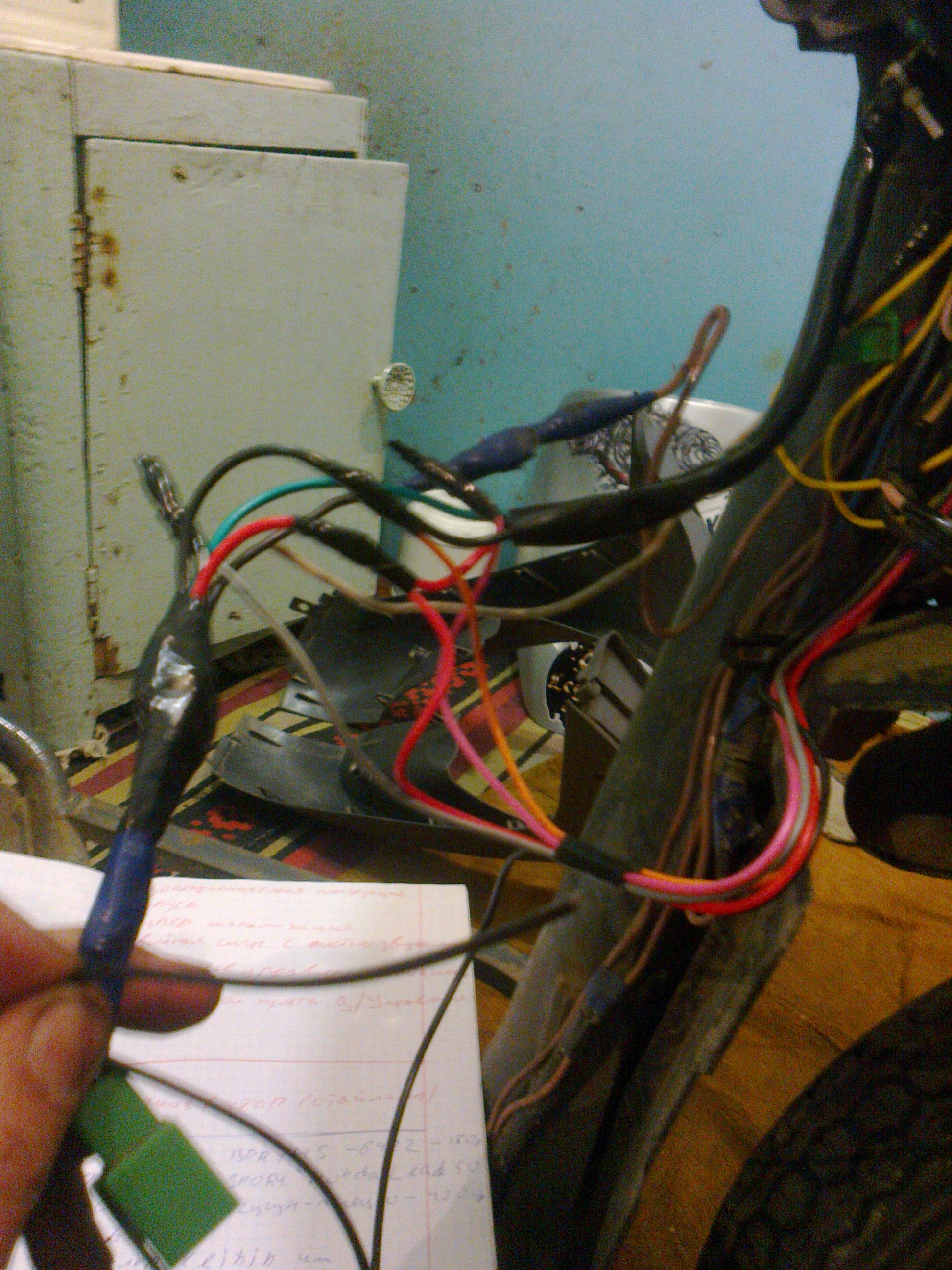 дальше подключил разьём на пищалку ,а на другой разьём подключил дополнительный жгут с проводами,каторый идёт в комплекте.проложил его до проводов от замка и лишнее обрезал.